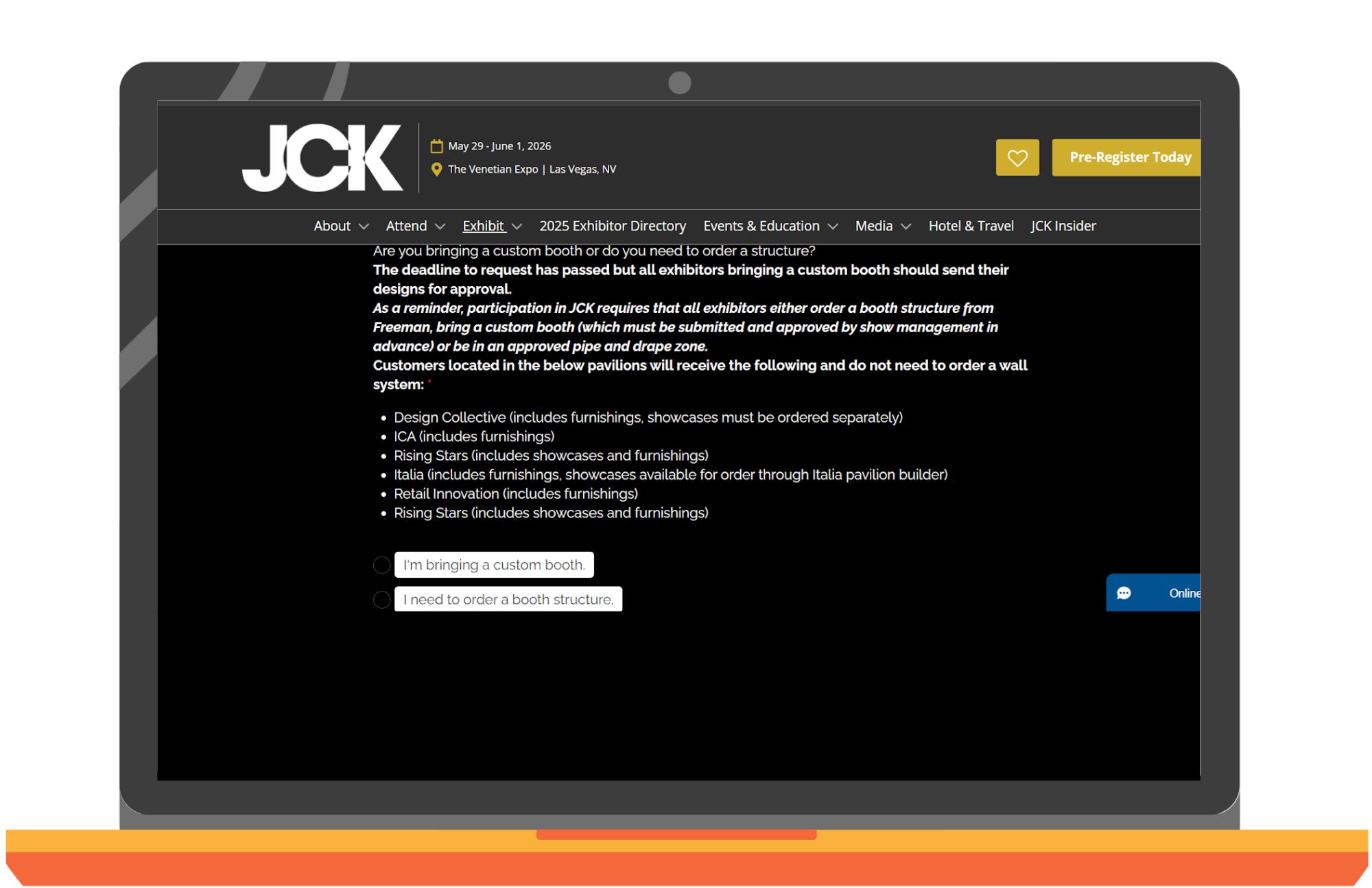 - Clarity: unlocked–no more scrolling through PDFs or PowerPoint Guides looking for information about booth lighting or carpet choices