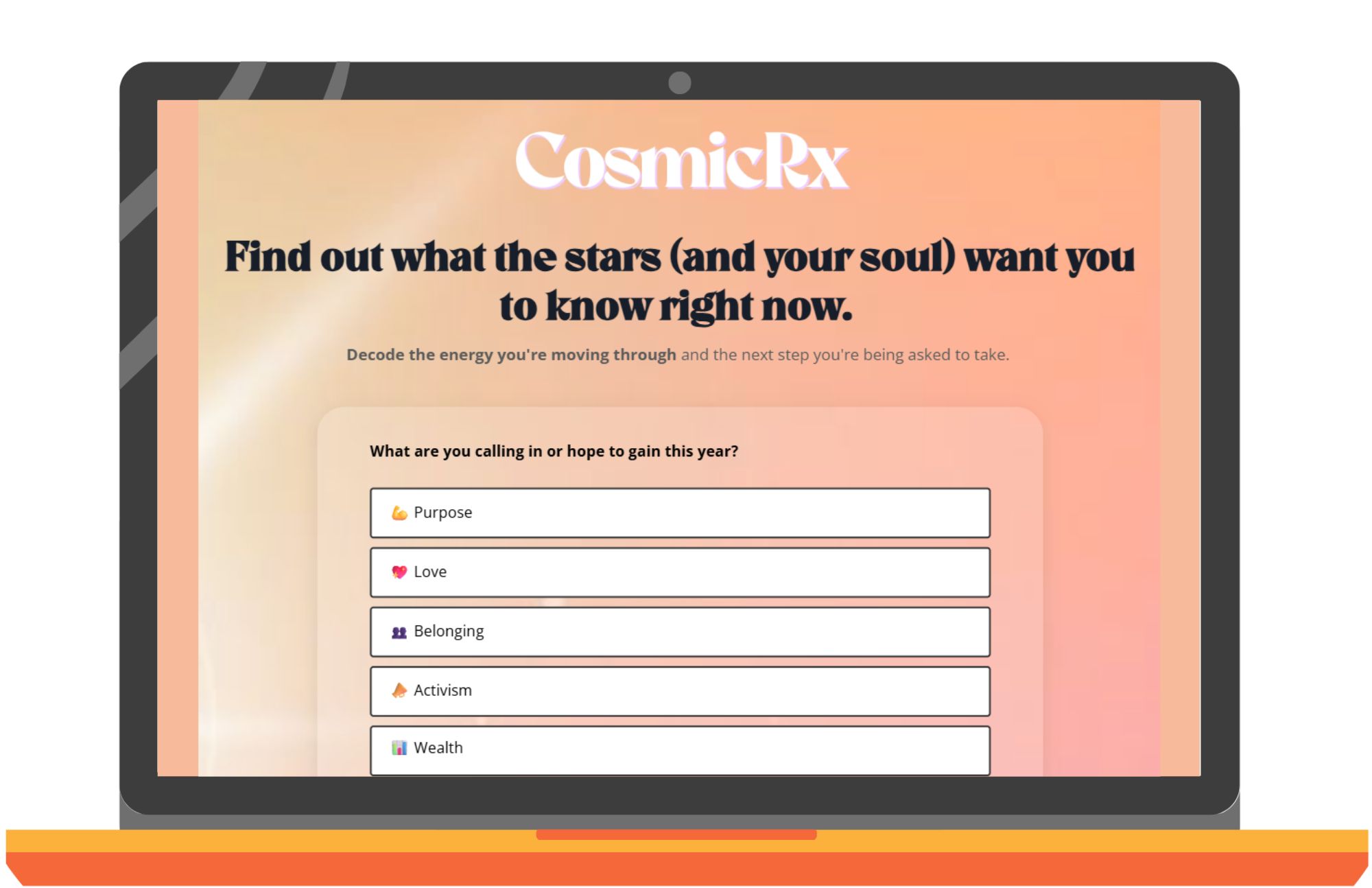 So you’ve worked hard on a new product but now it’s time to sell it. For CosmicRX, a digital media community and brand, launching a new book is exciting, but how do you give your followers a taste of the content beyond just a free sample download? Personalize their buying experience with a quiz, offering your audience a chance to experience what they’ll get when they make a purchase.
